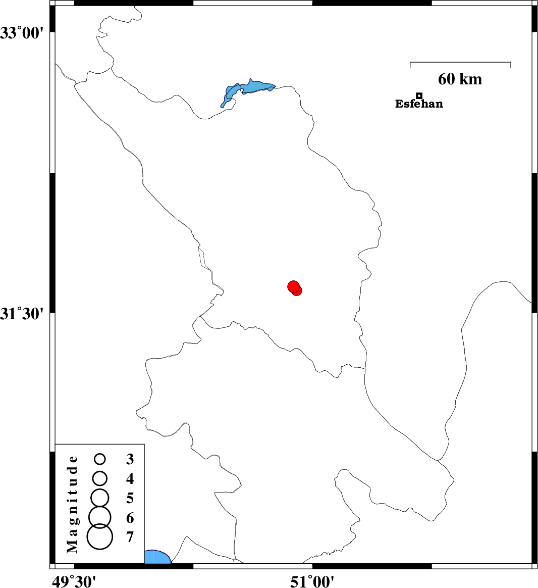 | 2006/10/26 | 22:26:38.4 | 01:56:38.4 | 31.62 | 50.9 | 18 | ML:3 | 15 km North of Lordegan, Chaharmahal Bakhtiari Province |