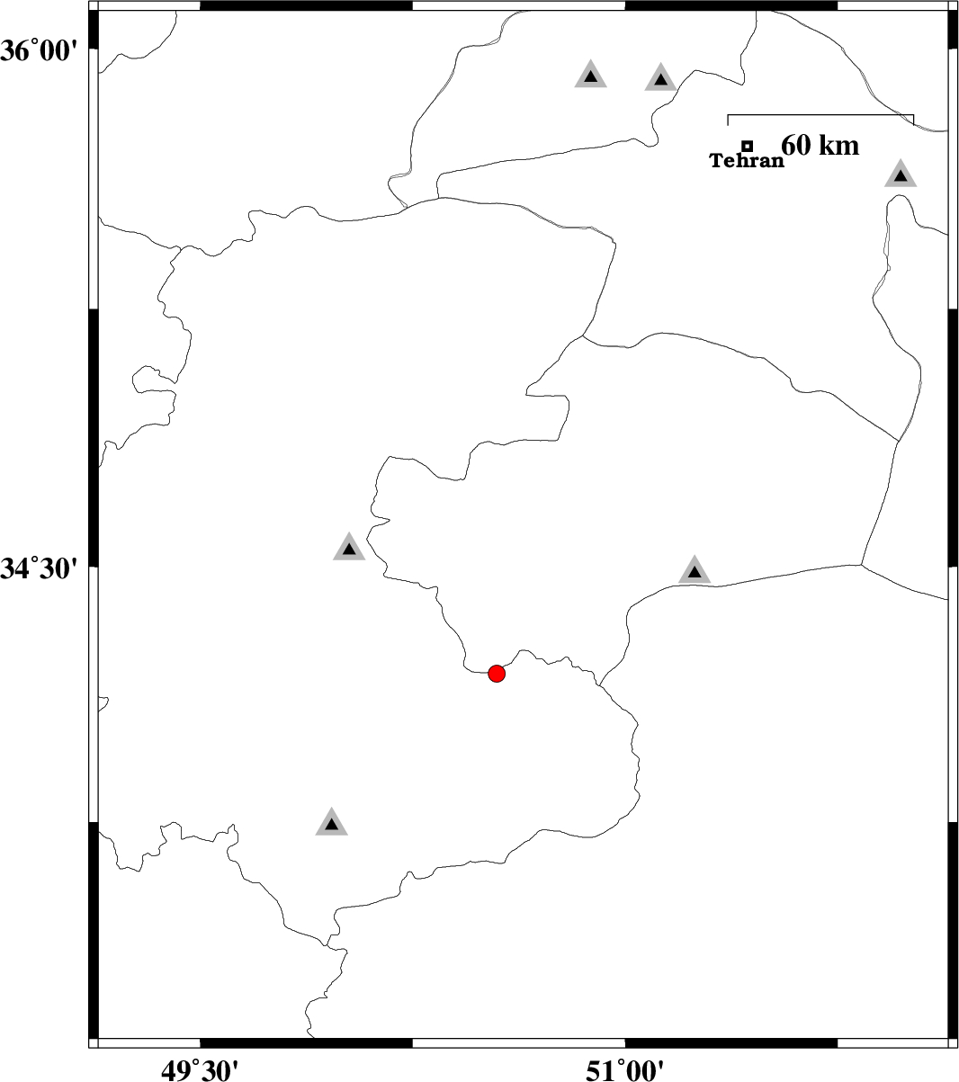 | 2006/10/30 | 13:55:25.3 | 17:25:25.3 | 35.78 | 51.88 | 18 | ML:2.7 | 18 km West of Damavand, Tehran Province |