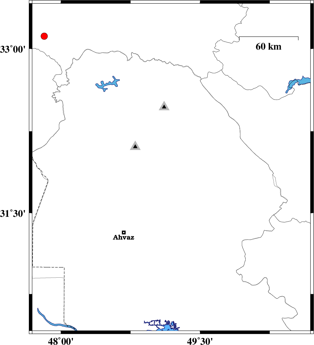 | 2006/10/31 | 08:40:53.1 | 12:10:53.1 | 30.5 | 50.04 | 16 | ML:3.2 | 22 km West of Behbahan, Khoozestan Province |