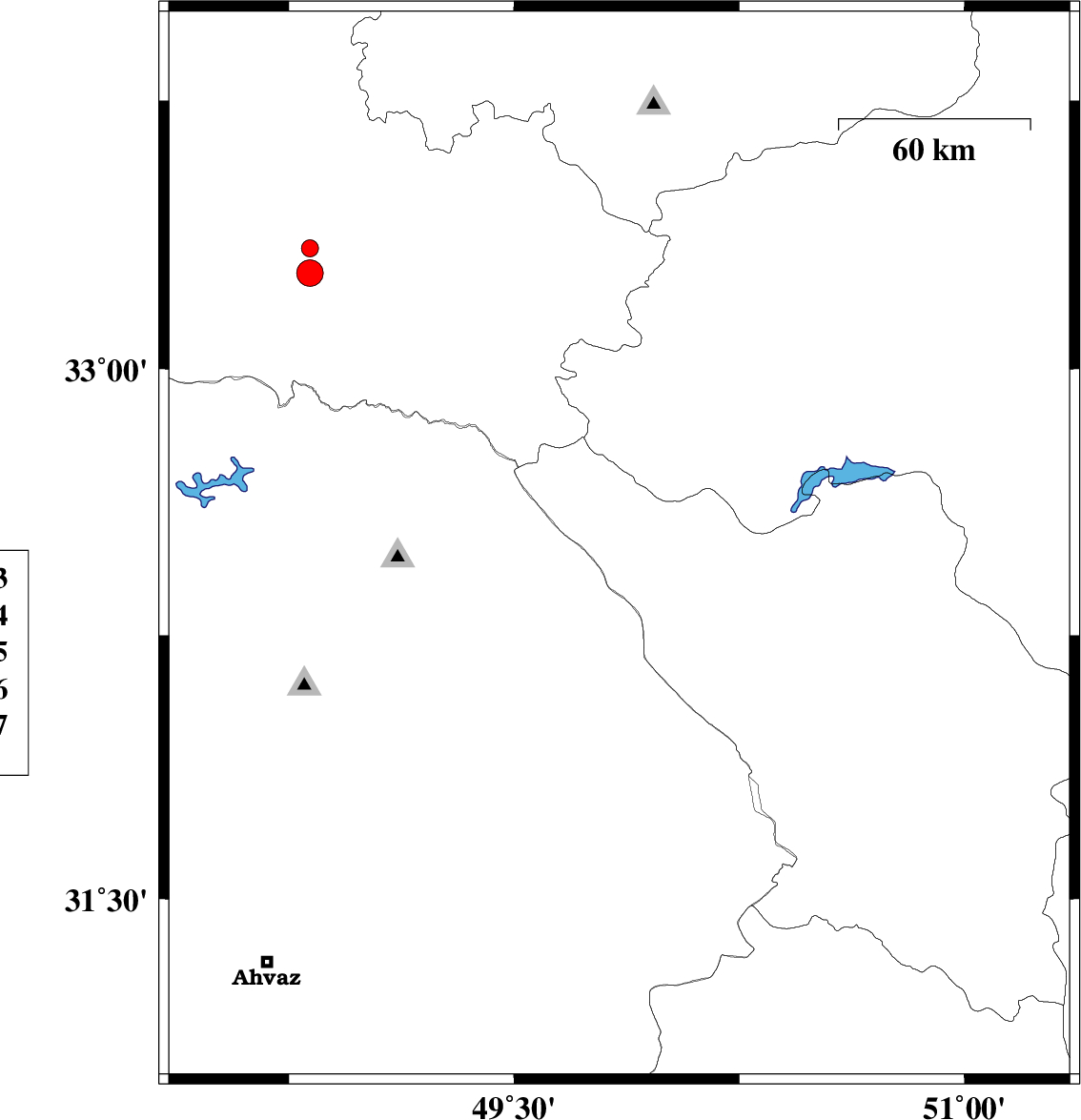 2006/11/11 12:21:08.3 15:51:08.3 32.549.8515 ML:2.6 26 km West of Chelgard, Chaharmahal Bakhtiari Province