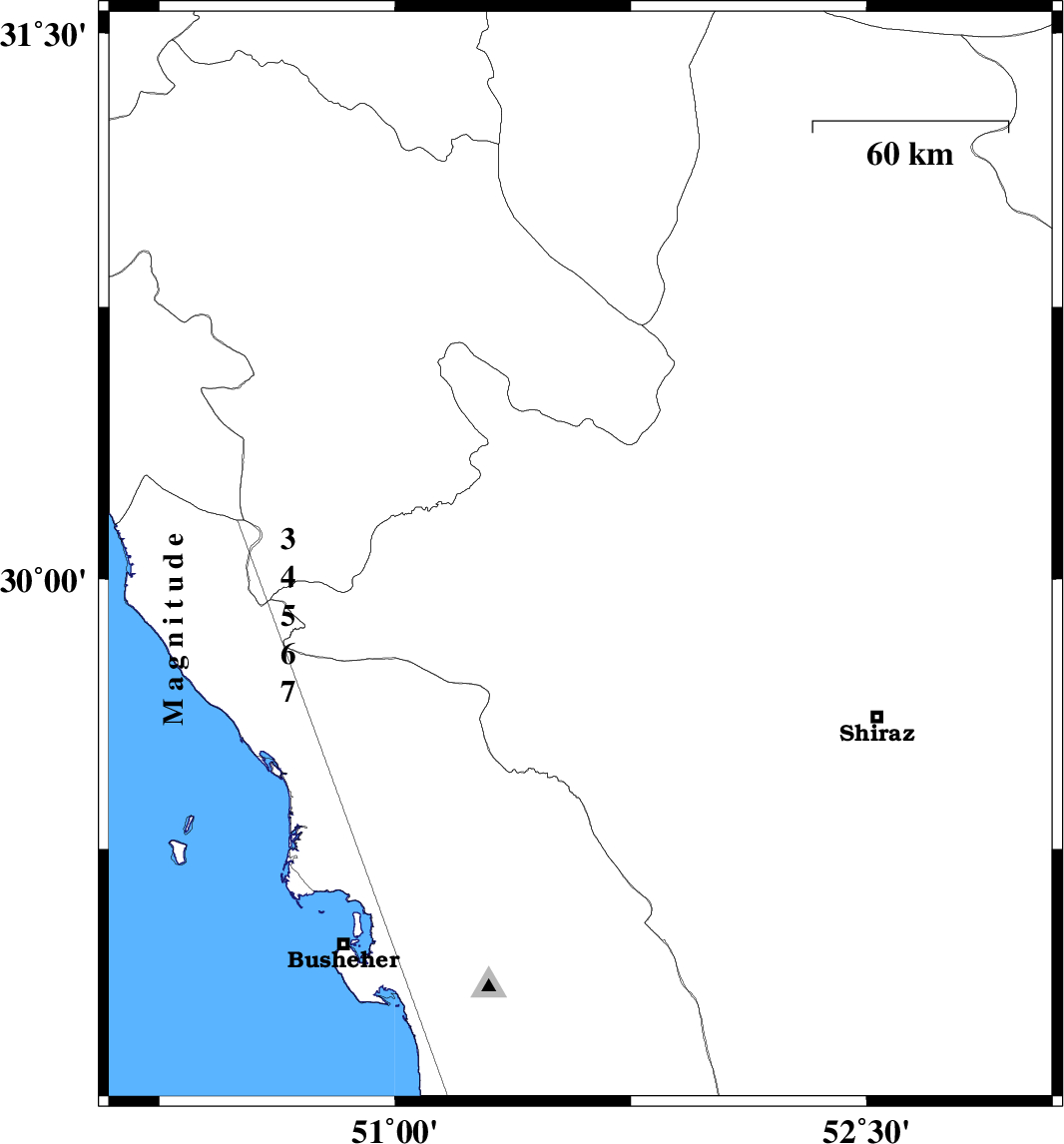 | 2006/11/16 | 19:36:22.1 | 23:06:22.1 | 30.02 | 51.53 | 18 | ML:3.6 | 10 km Nurabad, Fars Province |