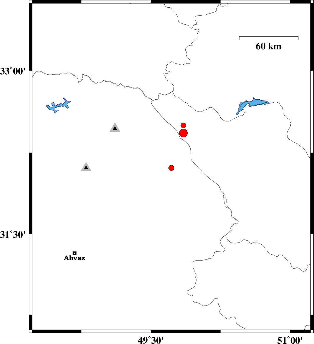 | 2006/11/17 | 12:43:35.7 | 16:13:35.7 | 32.11 | 49.72 | 14 | ML:2.7 | 33 km North-West of Izeh, Khoozestan Province | ||