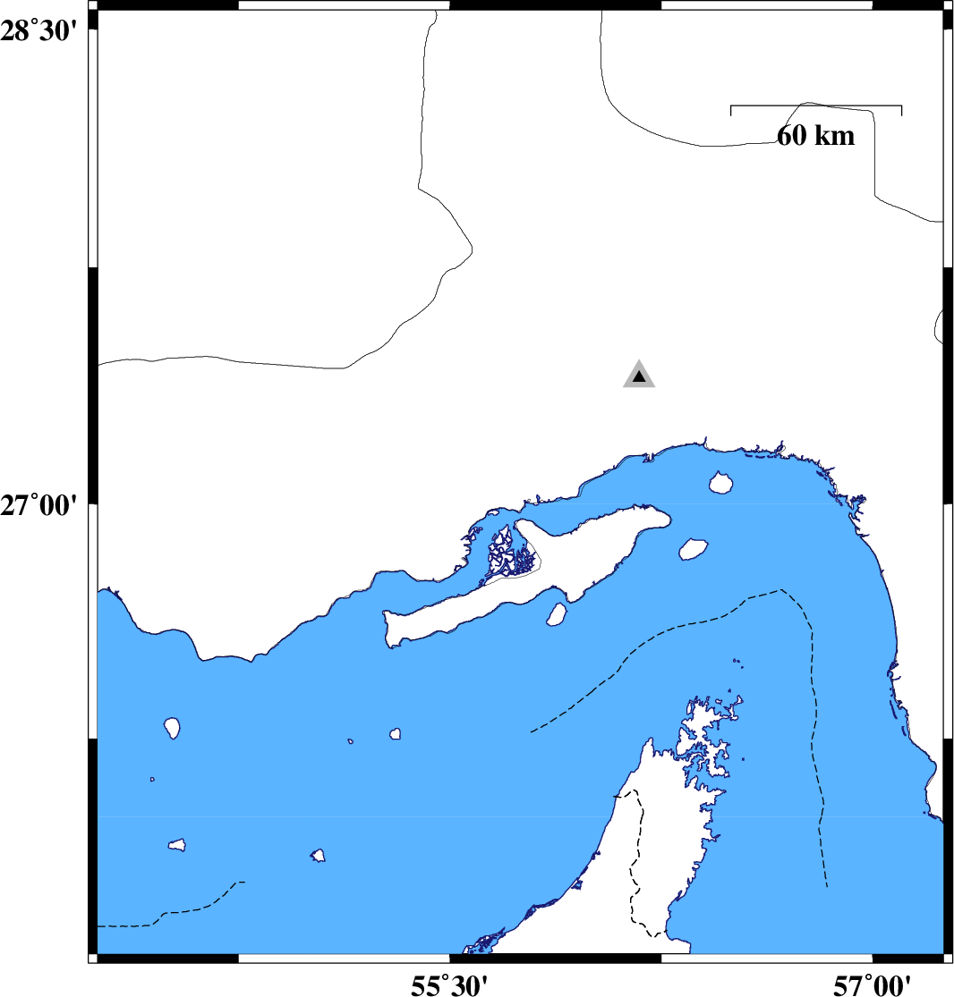 | 2006/11/18 | 01:05:09.1 | 04:35:09.1 | 27.06 | 55.75 | 15 | ML:4 | 52 km North-West of Qeshm, Hormozgan Province | ||