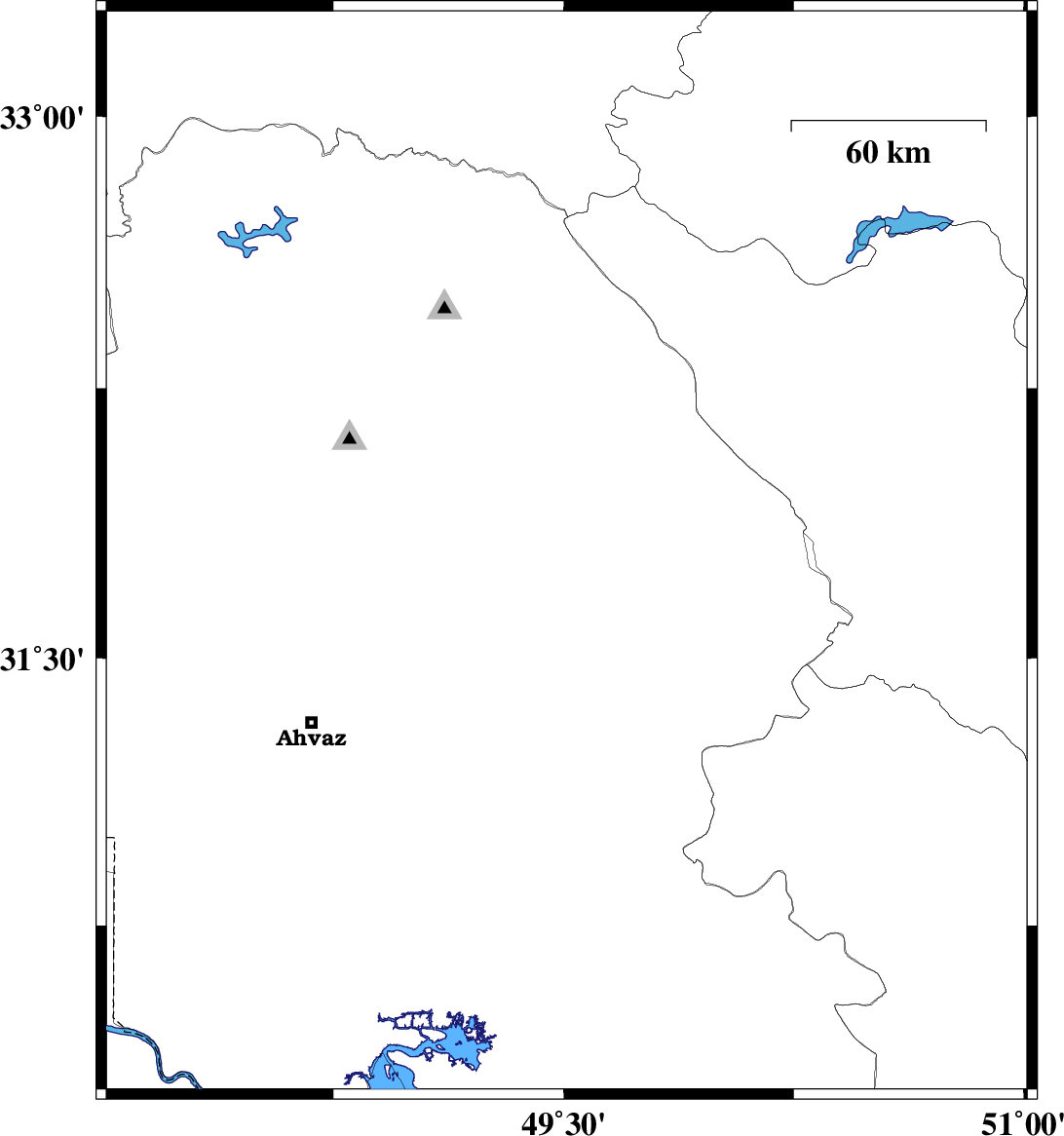 | 2006/11/23 | 12:21:32.2 | 15:51:32.2 | 31.79 | 49.51 | 18 | ML:3.8 | 25 km South-East of Masjed Soleyman, Khoozestan Province | ||