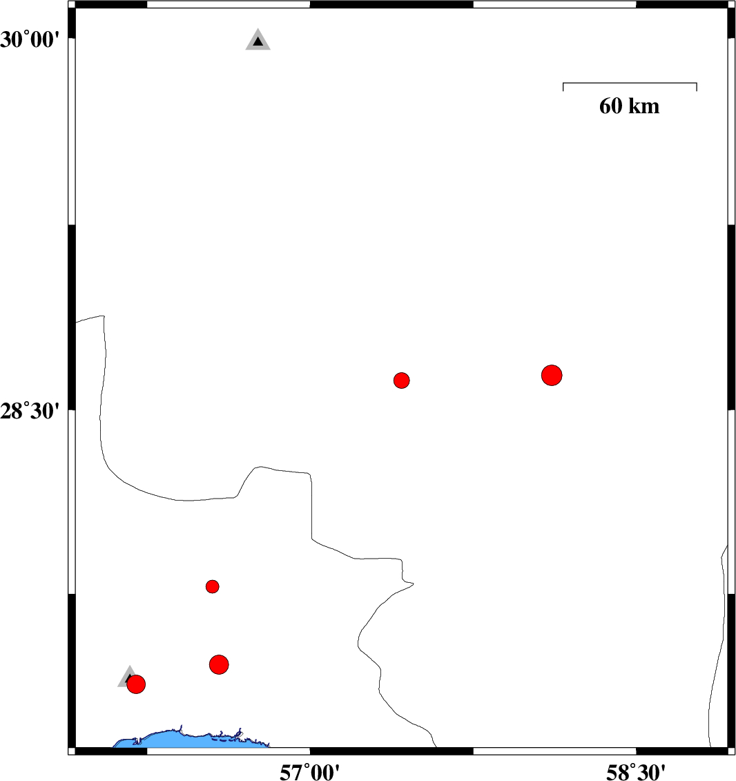 | 2006/11/13 | 18:31:52.6 | 22:01:52.6 | 27.46 | 56.58 | 14 | ML:3.9 | 42 km North-East of Bandar-e abbas, Hormozgan Province |