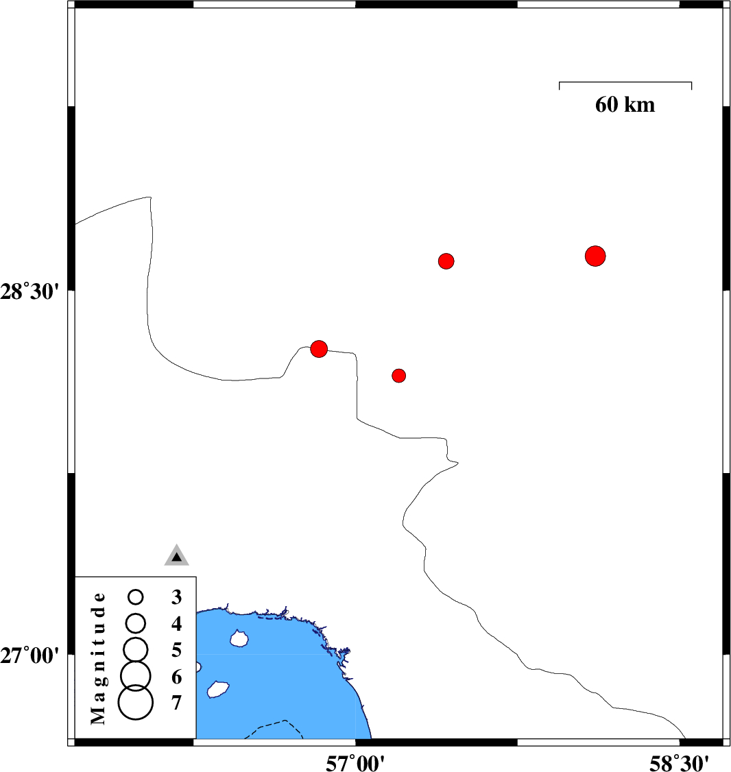 | 2006/12/15 | 15:00:49.2 | 18:30:49.2 | 28.15 | 57.2 | 18 | ML:2.8 | 53 km North-West of Kahnuj, Kerman Province | ||