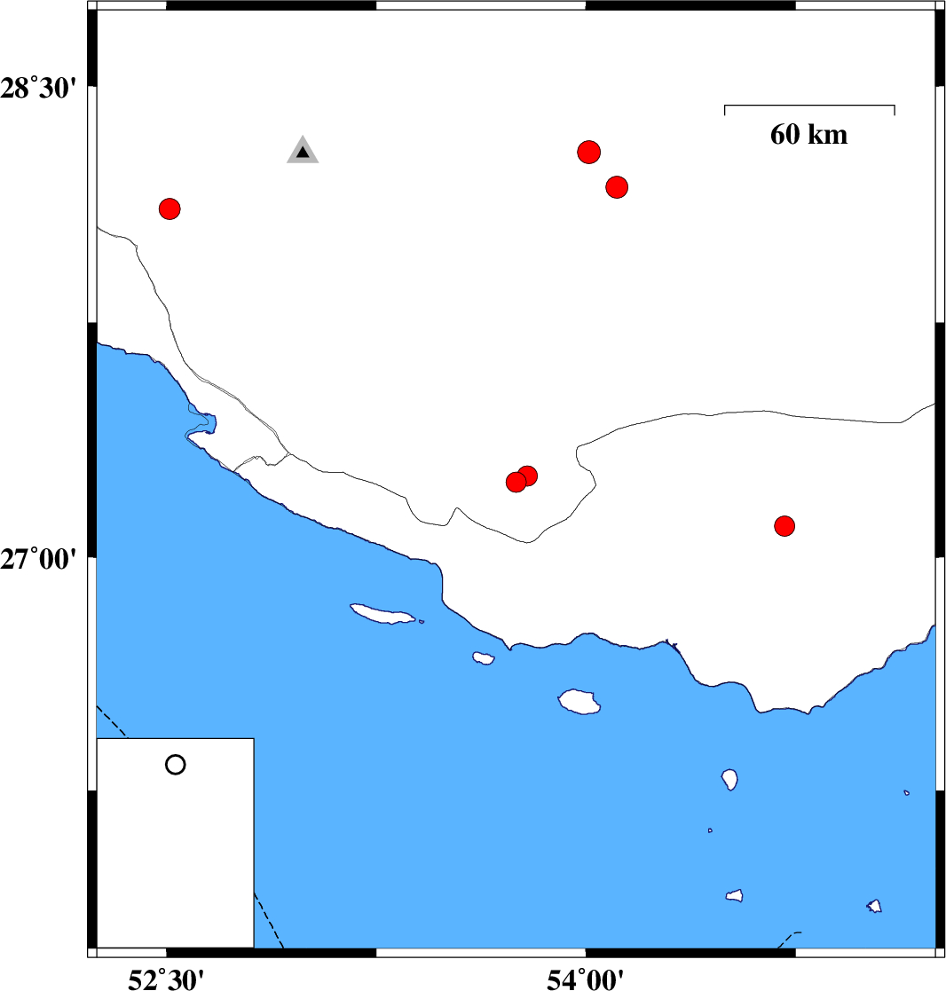 | 2006/11/17 | 15:47:57.0 | 19:17:57.0 | 28.29 | 54.01 | 38 | ML:3.6 | 50 km South-East of Jahrom, Fars Province |