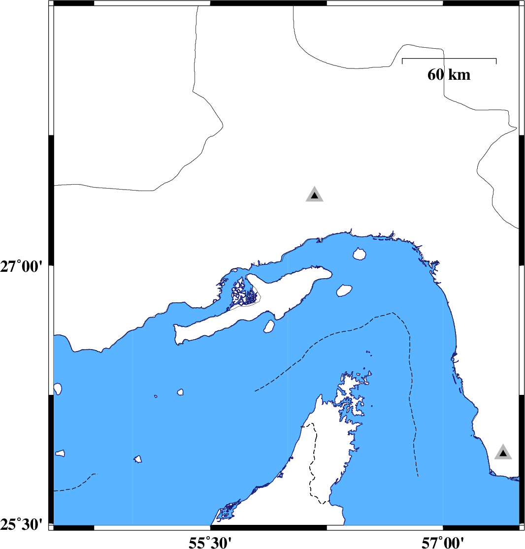 | 2006/12/18 | 19:43:37.3 | 23:13:37.3 | 26.99 | 55.99 | 15 | ML:4.1 | Persian Gulf, 27 km West of Qeshm | ||