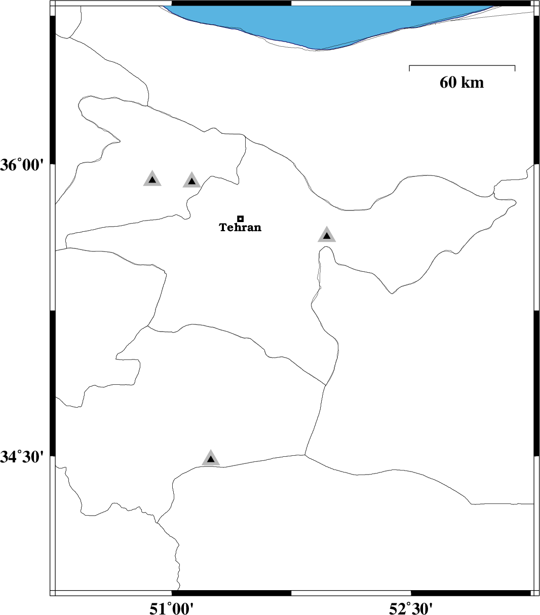 | 2006/12/20 | 05:37:57.9 | 09:07:57.9 | 35.74 | 51.87 | 14 | ML:2.9 | 18 km West of Damavand, Tehran Province | ||