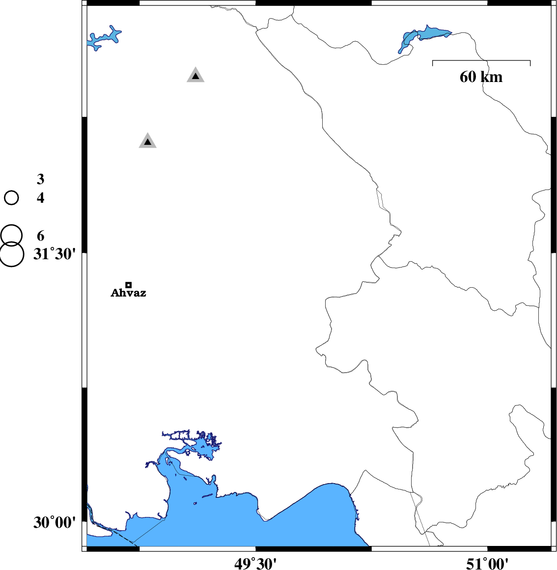 | 2007/01/01 | 20:00:08.9 | 23:30:08.9 | 31.36 | 49.91 | 14 | ML:3 | 17 km South of Bagh Malek, Khoozestan Province |