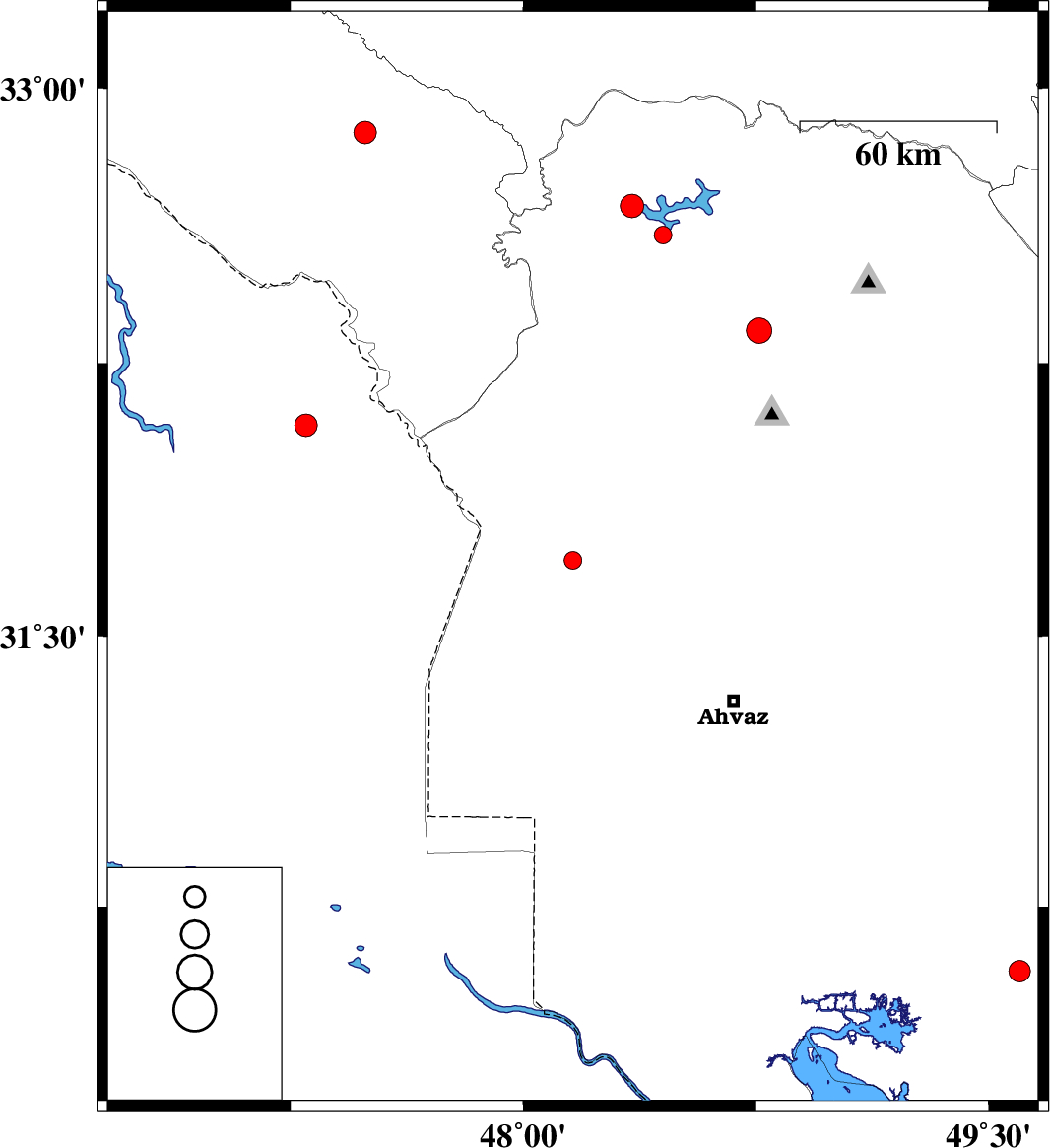 | 2006/12/16 | 15:09:36.6 | 18:39:36.6 | 32.34 | 48.76 | 18 | ML:3.6 | 33 km West of Lali, Khoozestan Province |