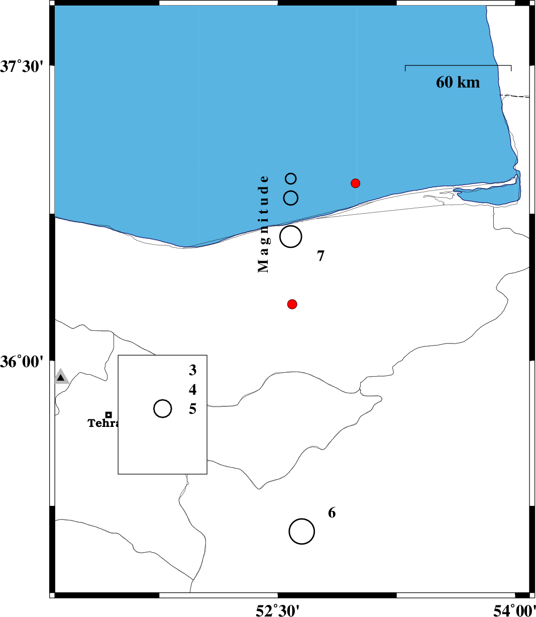 | 2007/01/13 | 18:36:17.4 | 22:06:17.4 | 35.68 | 52.19 | 16 | ML:2.7 | 11 km East of Damavand, Tehran Province | ||