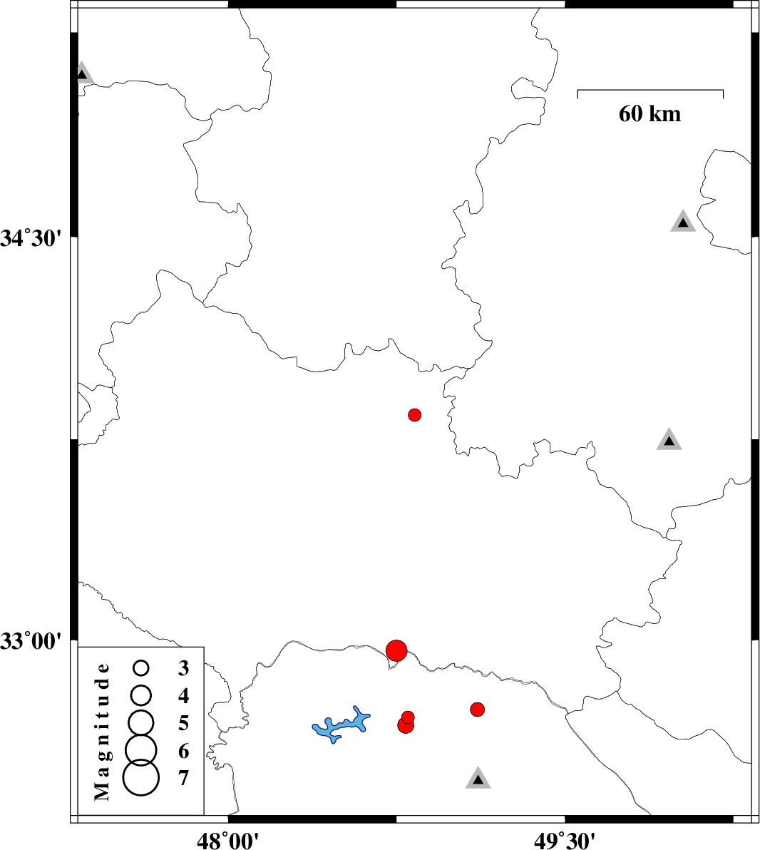 | 2007/01/19 | 05:47:14.1 | 09:17:14.1 | 32.96 | 48.75 | 26 | ML:4.2 | 65 km South-West of Dorud, Lorestan Province | ||