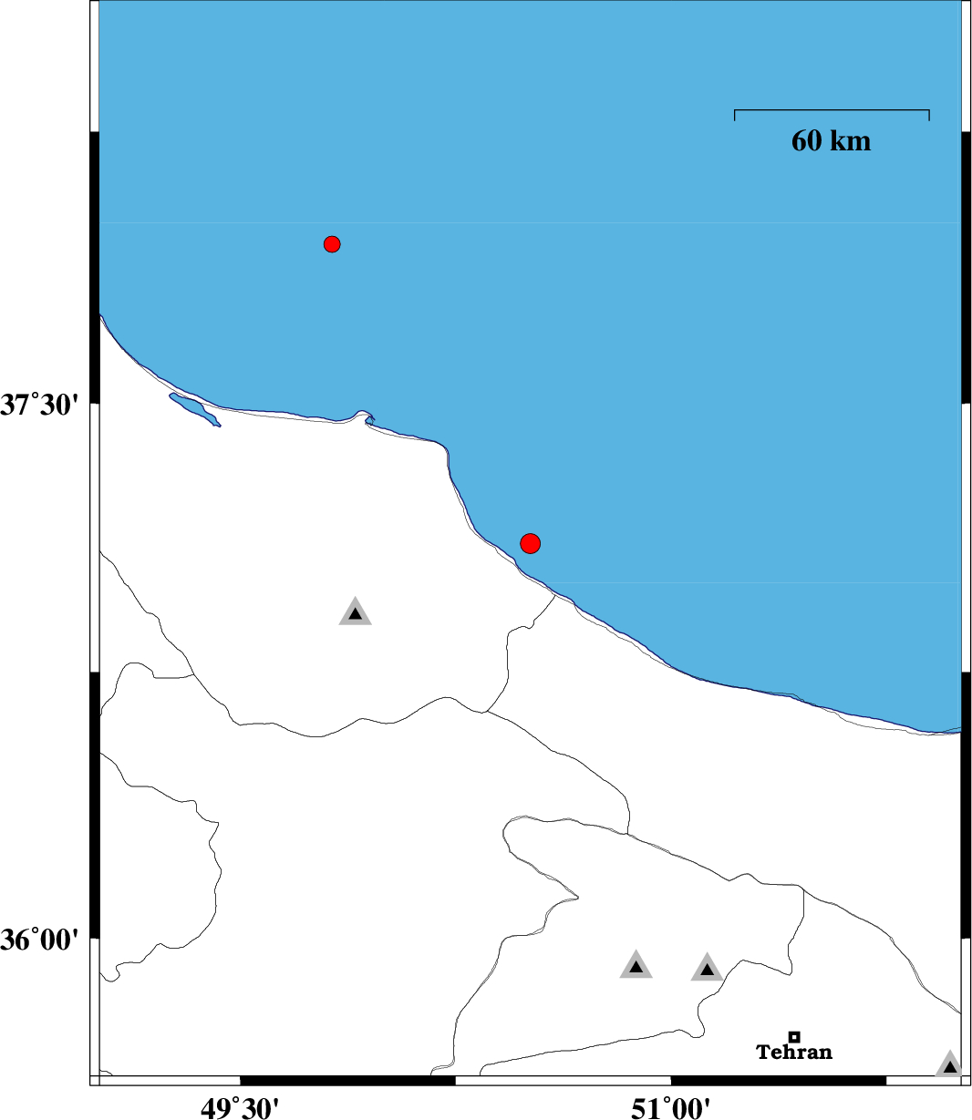 | 2007/01/21 | 05:31:14.2 | 09:01:14.2 | 37.94 | 49.82 | 14 | ML:2.6 | Caspian Sea, 59 km North-East of Bandar-e anzali |