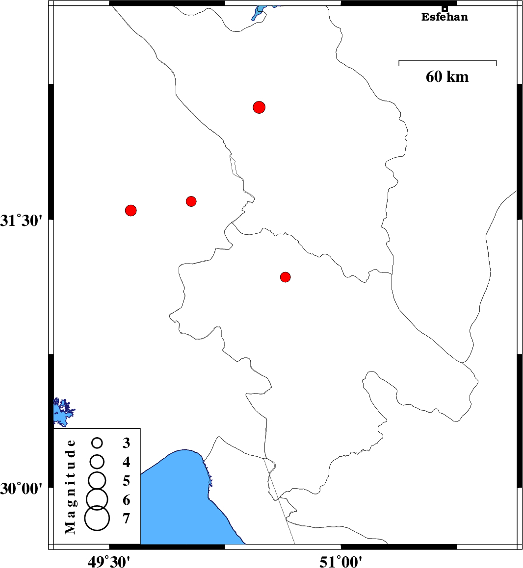 2007/03/06 05:53:59.6 09:23:59.6 31.650.0325 ML:2.9 15 km East of Bagh Malek, Khoozestan Province