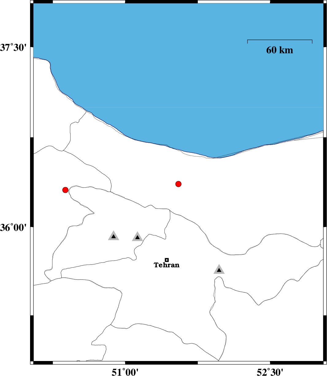 | 2007/03/26 | 14:28:08.0 | 17:58:08.0 | 36.31 | 50.38 | 27 | ML:2.7 | 33 km North-West of Abyek, Ghazvin Province |