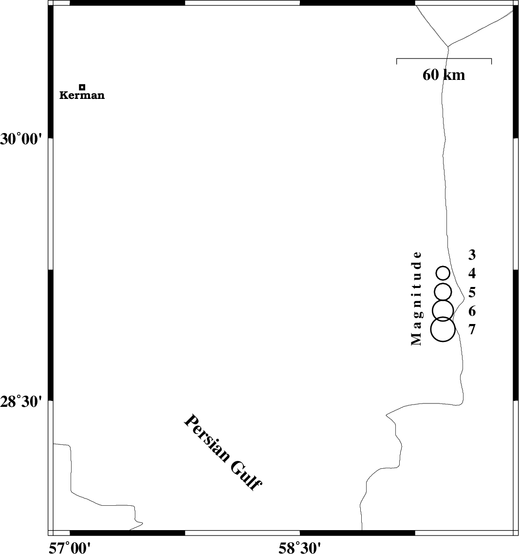 | 2007/05/09 | 10:46:36.7 | 14:16:36.7 | 29.2 | 58.38 | 14 | ML:3.6 | 9 km Bam, Kerman Province |