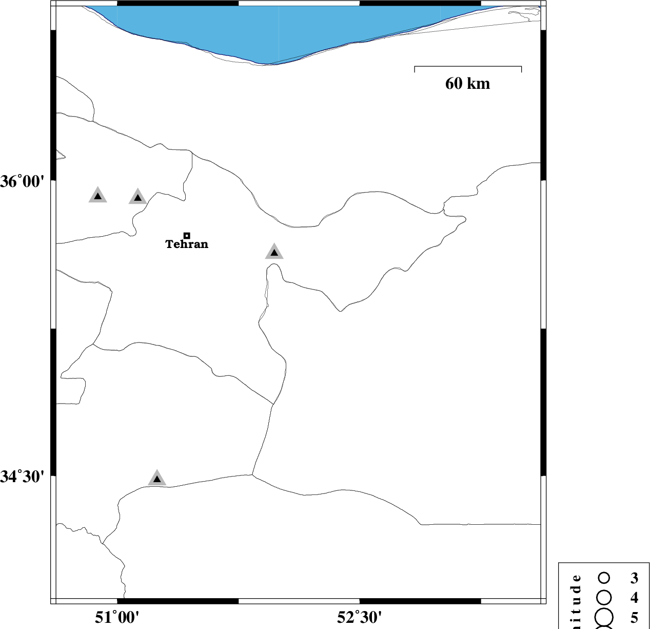 | 2007/05/06 | 15:55:36.6 | 19:25:36.6 | 35.66 | 52.38 | 8 | ML:2.6 | 28 km East of Damavand, Tehran Province | ||