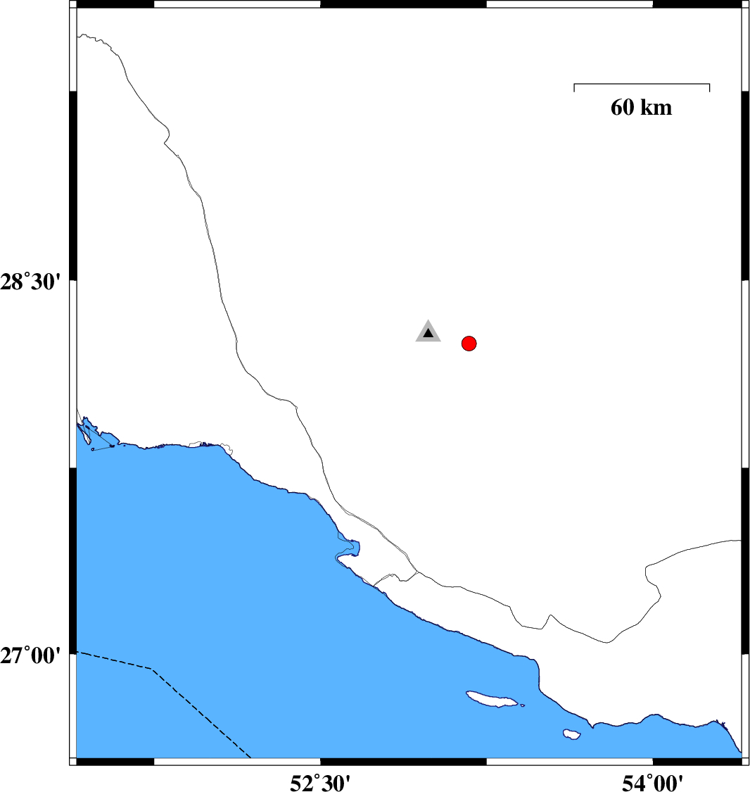 | 2007/06/02 | 06:25:49.4 | 09:55:49.4 | 29.38 | 51.5 | 15 | ML:3 | 30 km South-West of Kazerun, Fars Province |