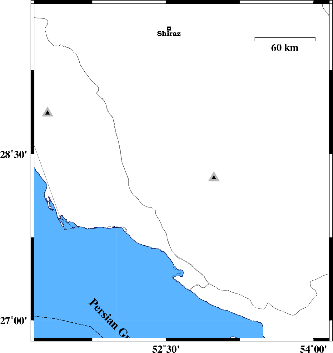 | 2007/06/17 | 10:38:13.3 | 14:08:13.3 | 27.05 | 52.97 | 24 | ML:3.3 | Persian Gulf, 37 km South-West of Lamerd |