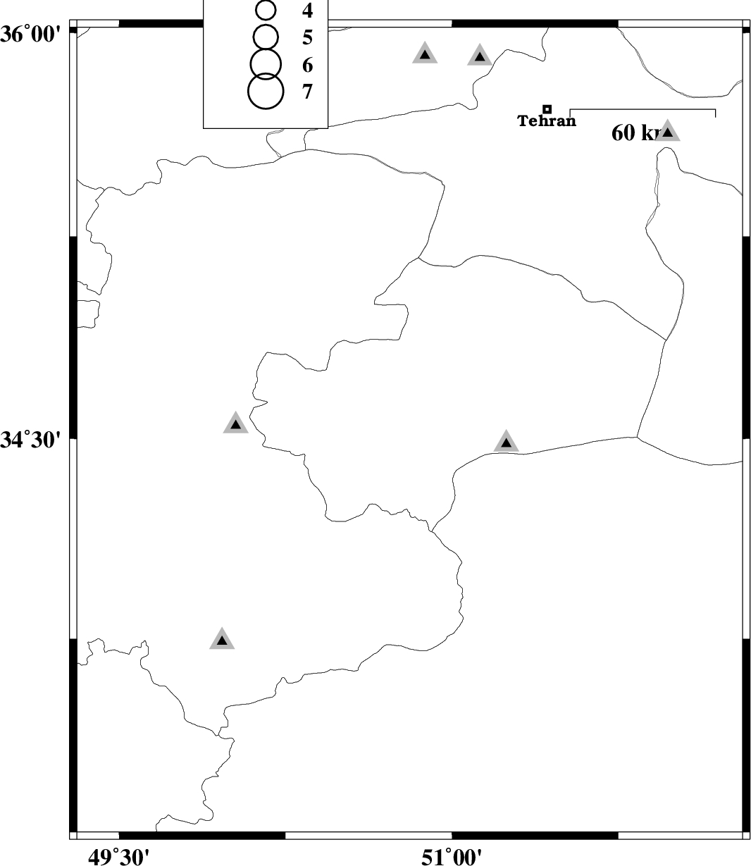 2007/05/30 09:44:10.4 13:14:10.4 35.7952.112 ML:2.6 8 km Damavand, Tehran Province