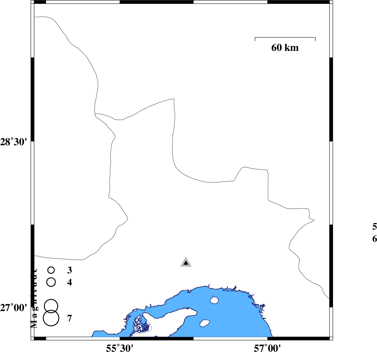 2007/03/29 02:38:42.9 06:08:42.9 27.855.2614 ML:3.8 84 km South-West of Hajiabad, Hormozgan Province