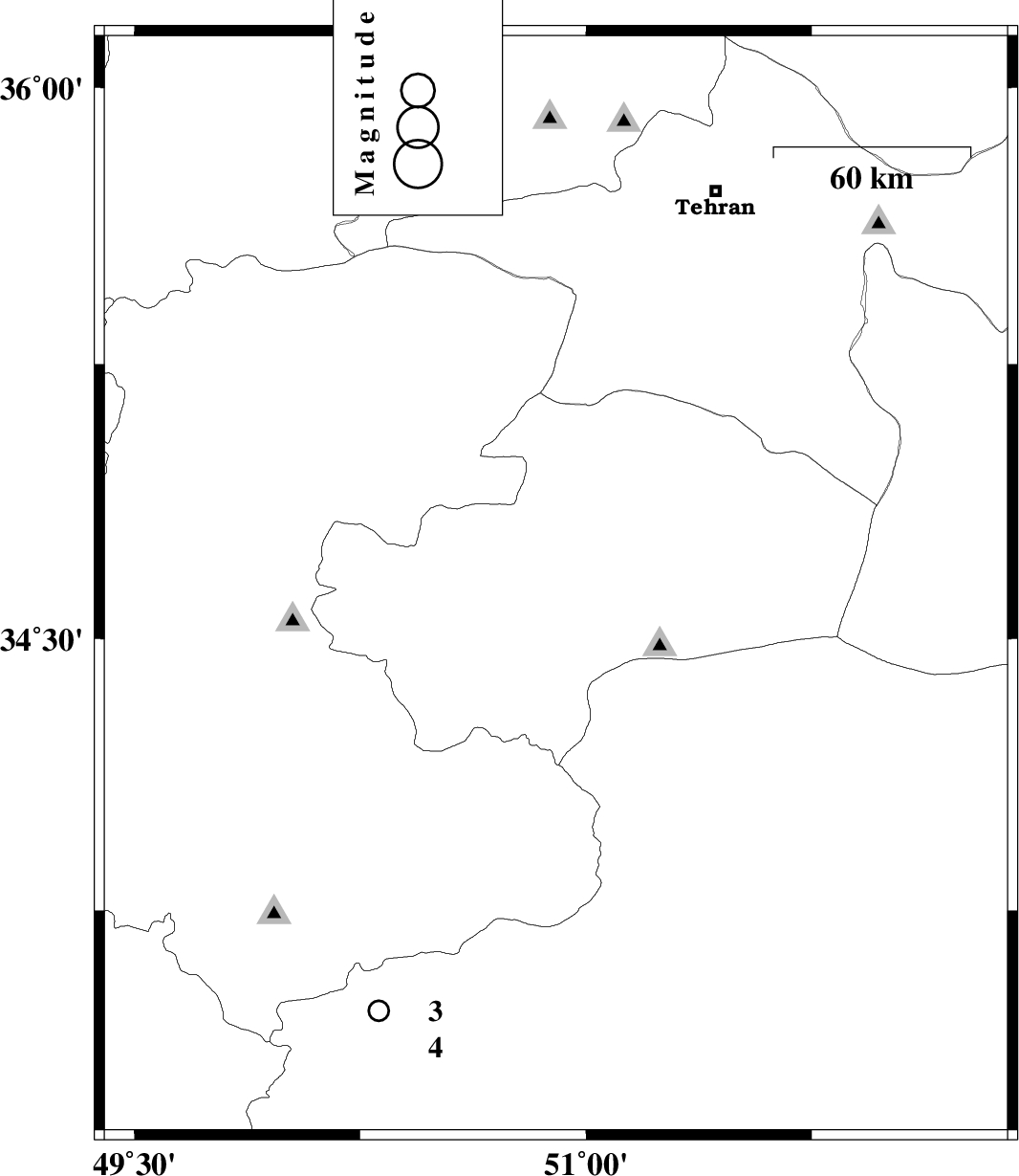 | 2007/06/28 | 12:04:13.9 | 15:34:13.9 | 34.52 | 50.81 | 36 | ML:2.7 | 15 km South of Qom, Qom Province | ||
