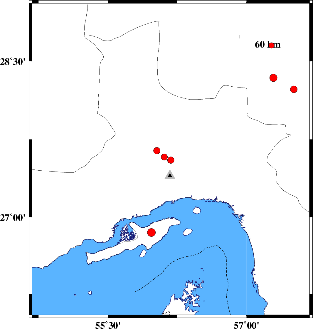 | 2007/06/27 | 19:08:16.9 | 22:38:16.9 | 26.85 | 55.97 | 17 | ML:3.9 | Persian Gulf, 31 km South-West of Qeshm | ||