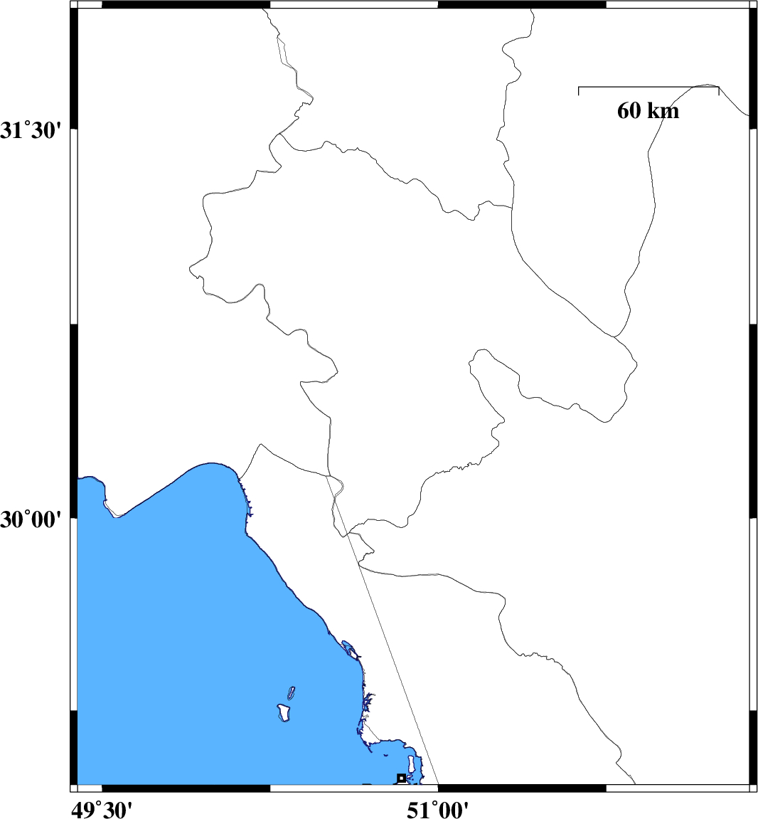 | 2007/06/27 | 00:08:50.3 | 03:38:50.3 | 29.68 | 51.52 | 14 | ML:3.6 | 14 km West of Kazerun, Fars Province |