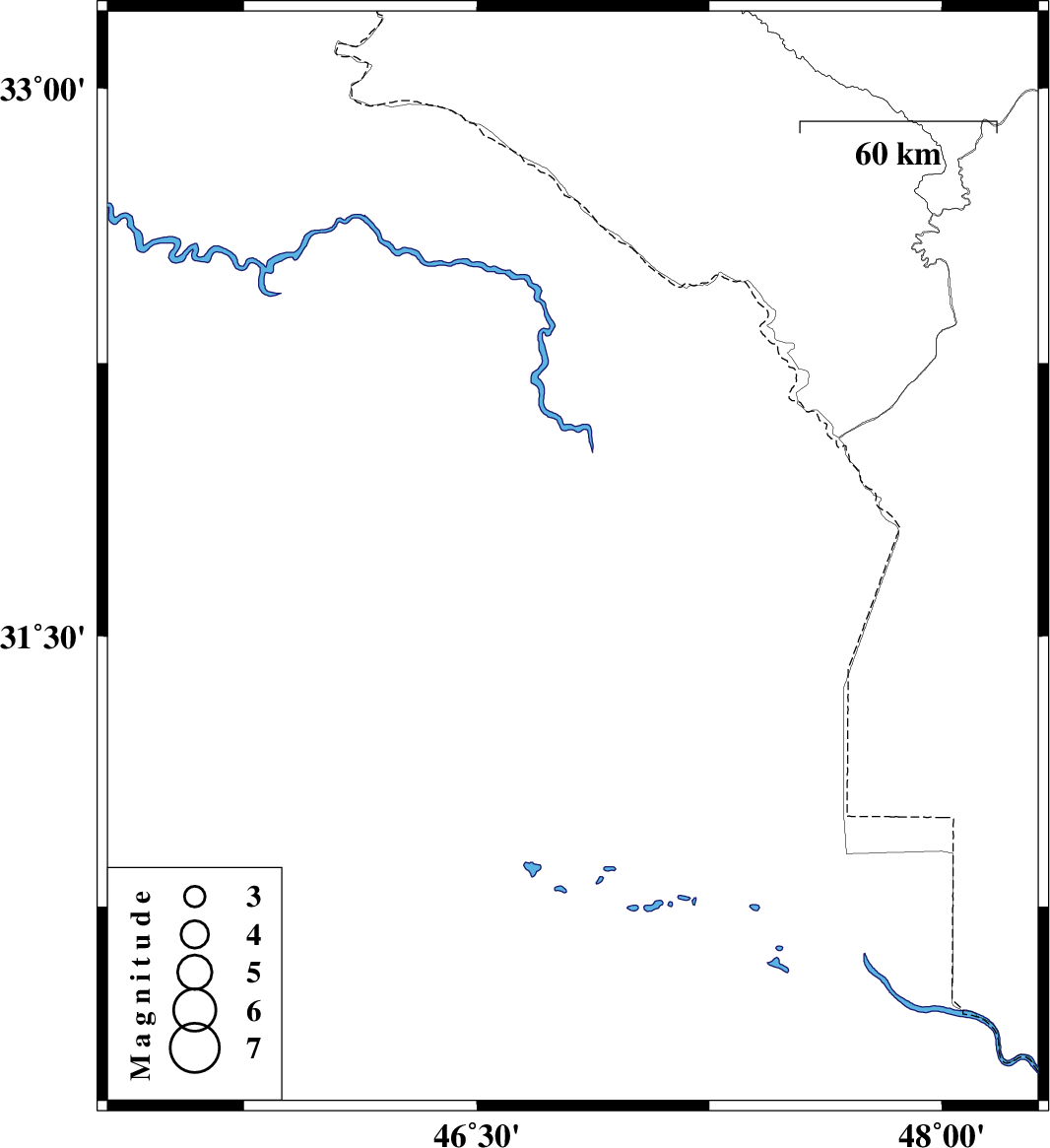 | 2007/08/06 | 10:25:55.7 | 13:55:55.7 | 31.71 | 46.81 | 33 | ML:2.9 | 117 km South-West of Dehloran, Ilam Province |