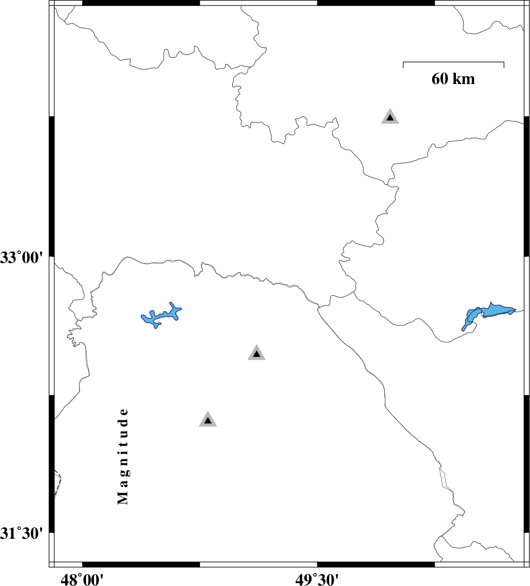 | 2007/09/06 | 18:22:09.0 | 21:52:09.0 | 32.84 | 49.32 | 14 | ML:2.7 | 53 km North-East of Lali, Khoozestan Province | ||
