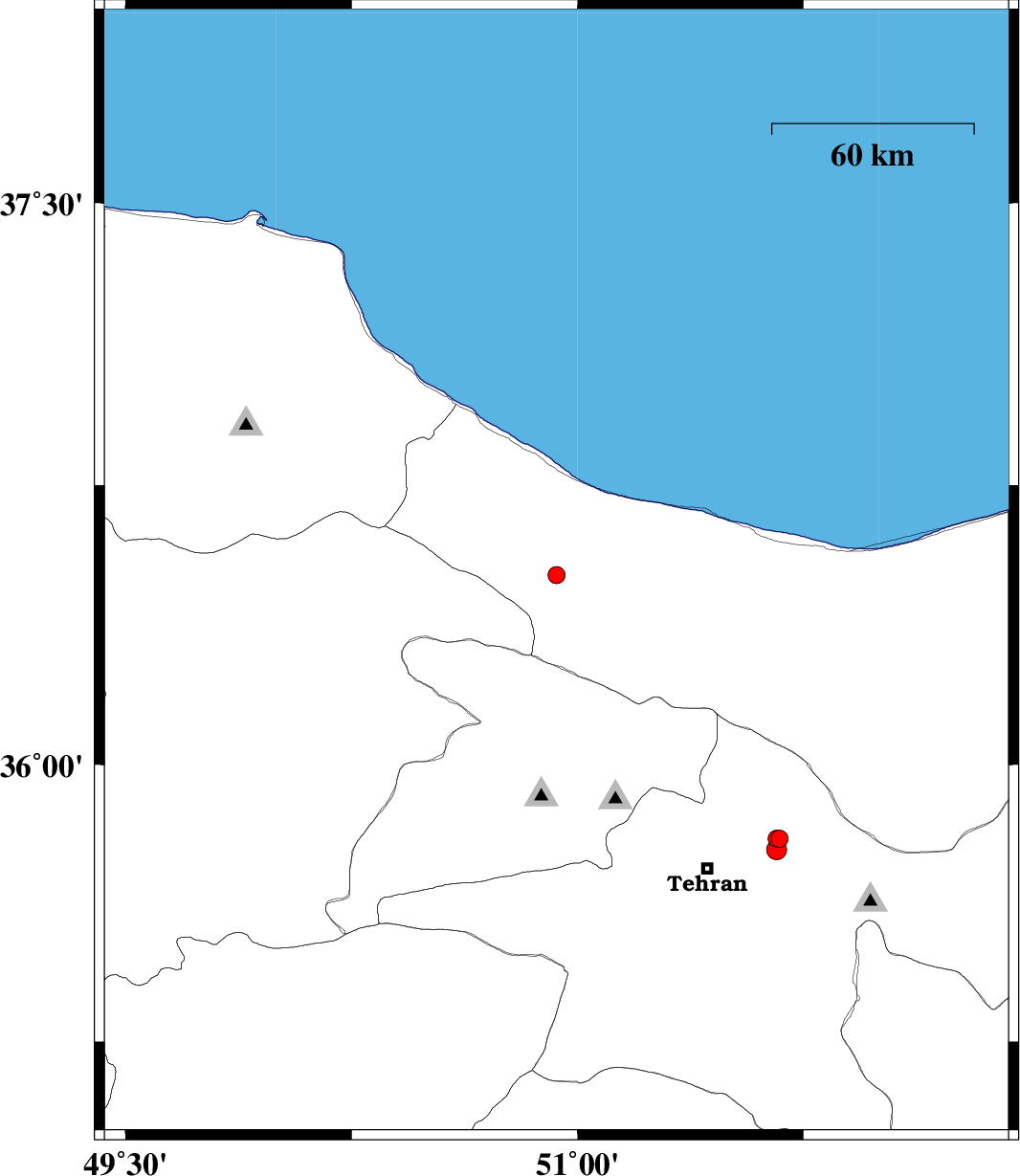 | 2007/07/31 | 03:07:59.8 | 06:37:59.8 | 35.77 | 51.66 | 16 | ML:2.9 | 19 km East of Tajrish, Tehran Province |