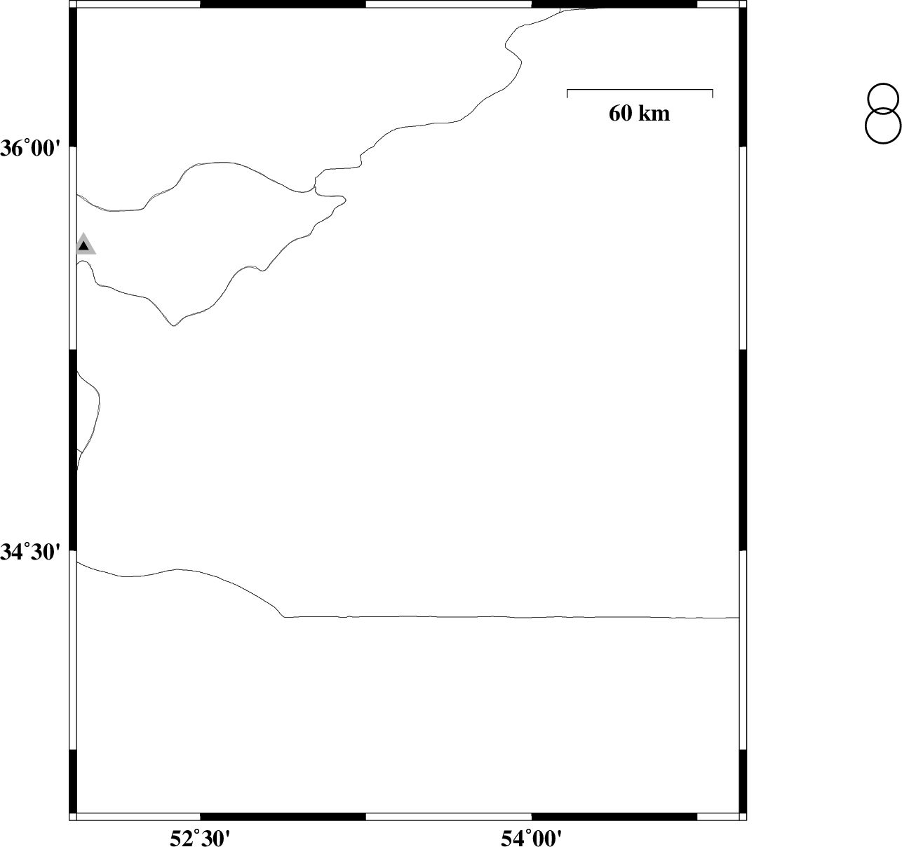 | 2007/09/05 | 17:52:35.7 | 21:22:35.7 | 34.94 | 53.51 | 14 | ML:2.6 | 70 km South-East of Semnan, Semnan Province | ||