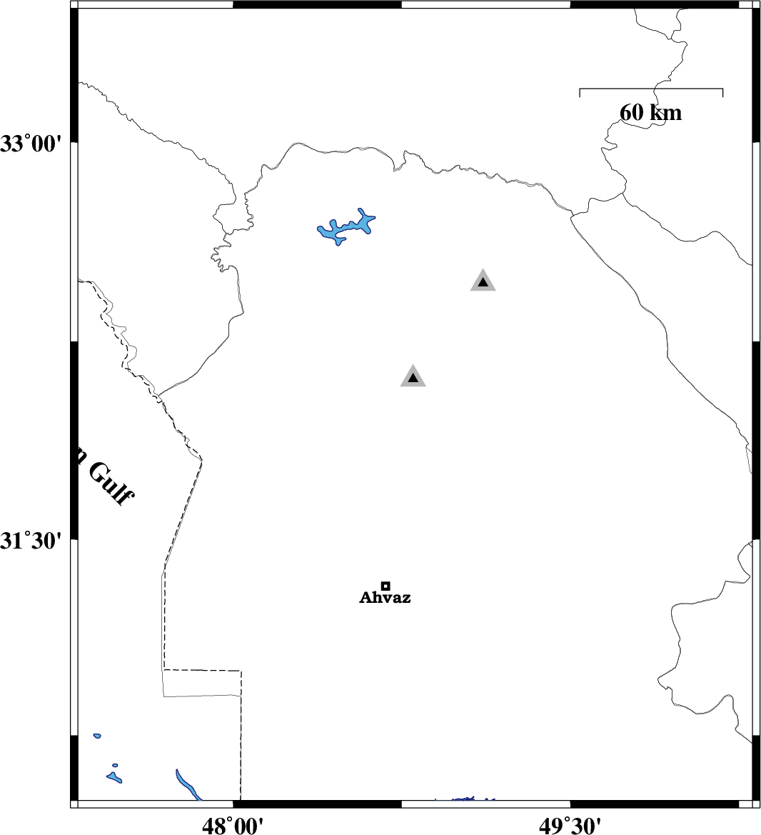 | 2007/09/04 | 04:33:04.6 | 08:03:04.6 | 31.06 | 50.11 | 18 | ML:3.3 | 50 km North-East of Omidiyeh, Khoozestan Province |