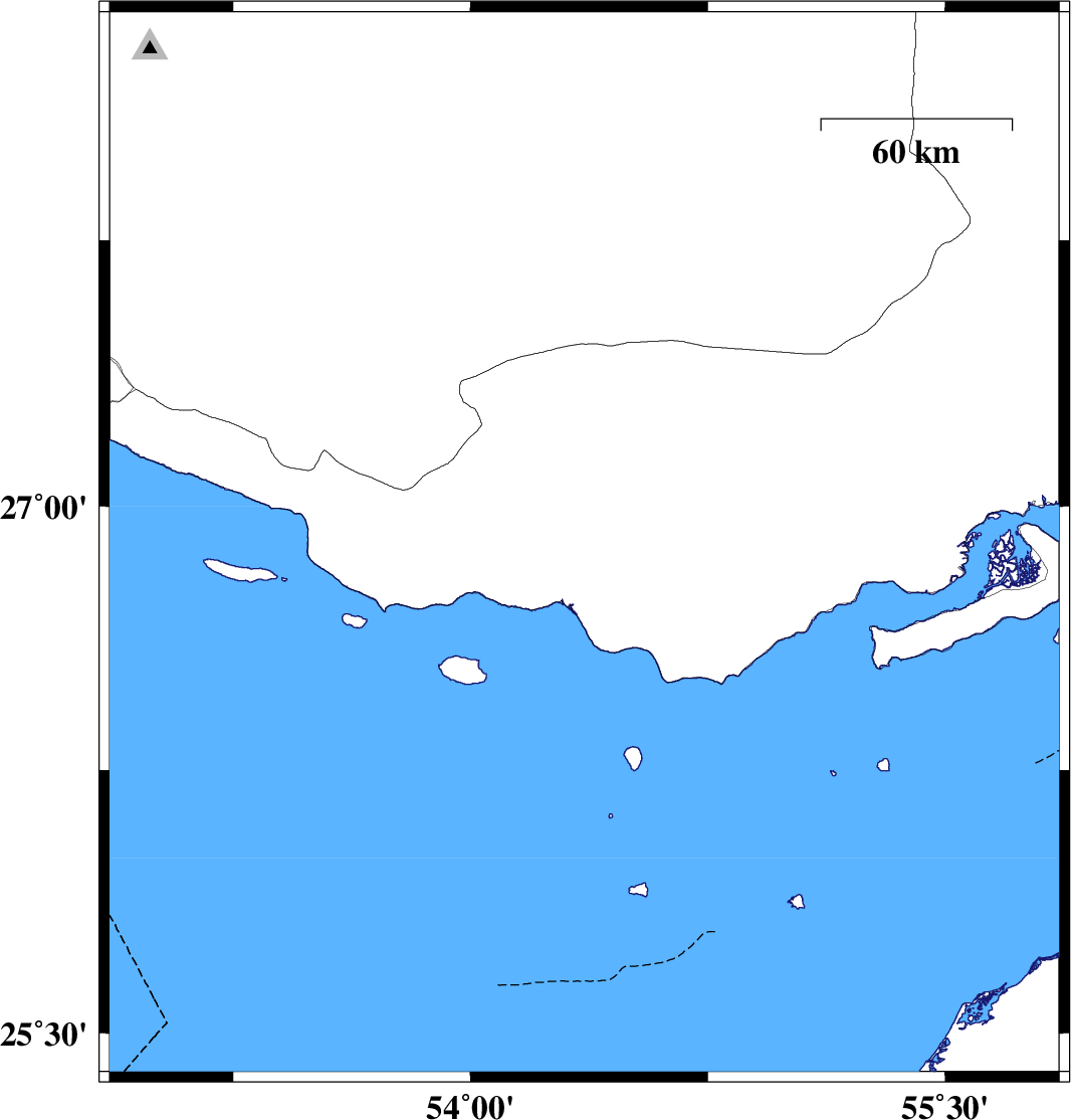 | 2007/09/18 | 04:38:54.2 | 08:08:54.2 | 26.89 | 54.36 | 35 | ML:2.9 | 34 km South of Bastak, Hormozgan Province |