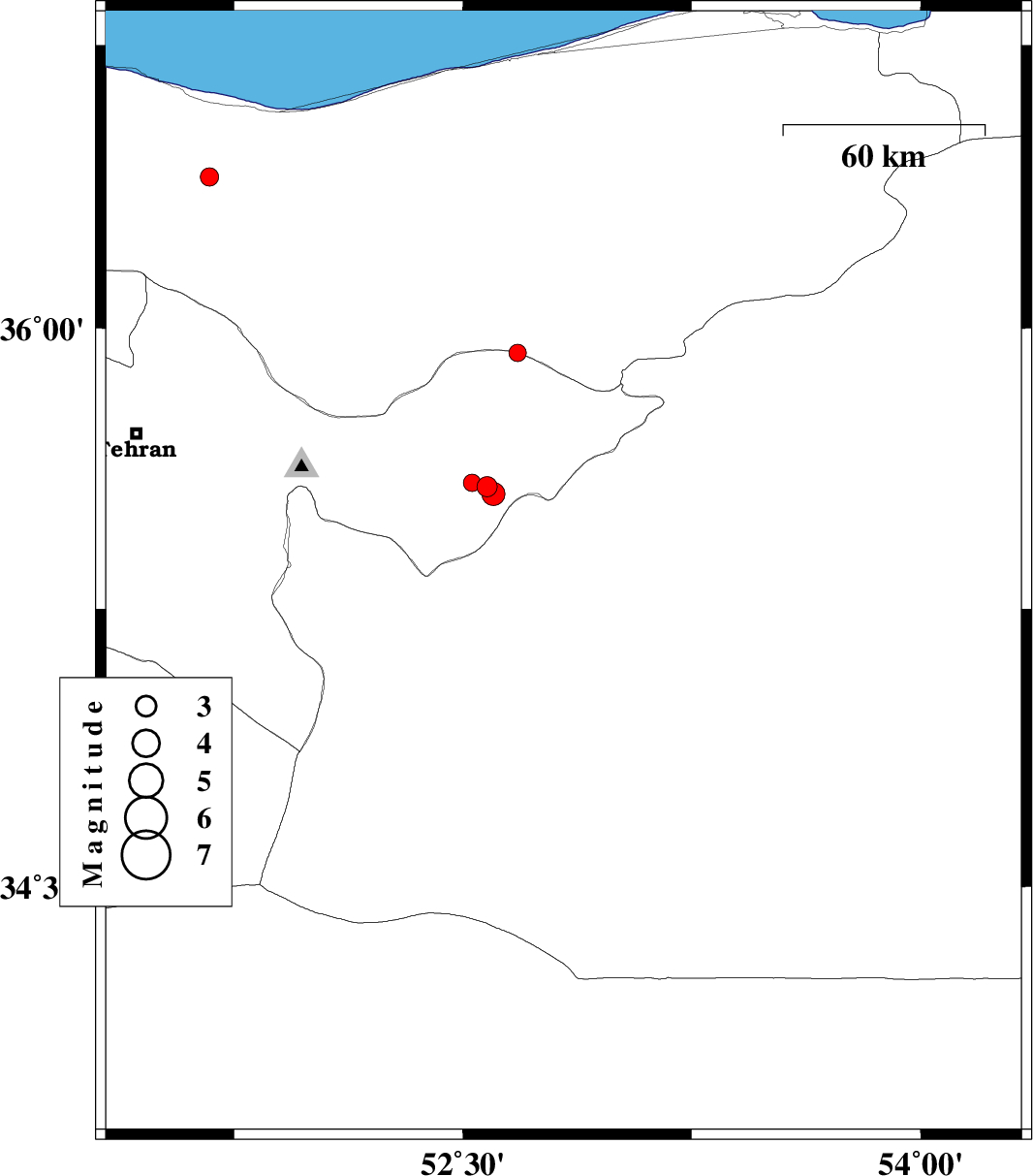| 2007/09/15 | 07:01:16.8 | 10:31:16.8 | 35.81 | 51.82 | 18 | ML:2.7 | 25 km West of Damavand, Tehran Province |