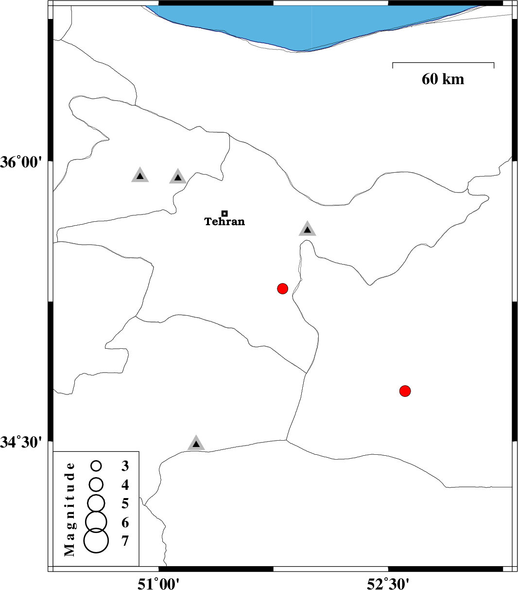 | 2007/09/25 | 18:26:33.5 | 21:56:33.5 | 34.77 | 52.61 | 14 | ML:3.2 | 56 km South-East of Garmsar, Semnan Province |