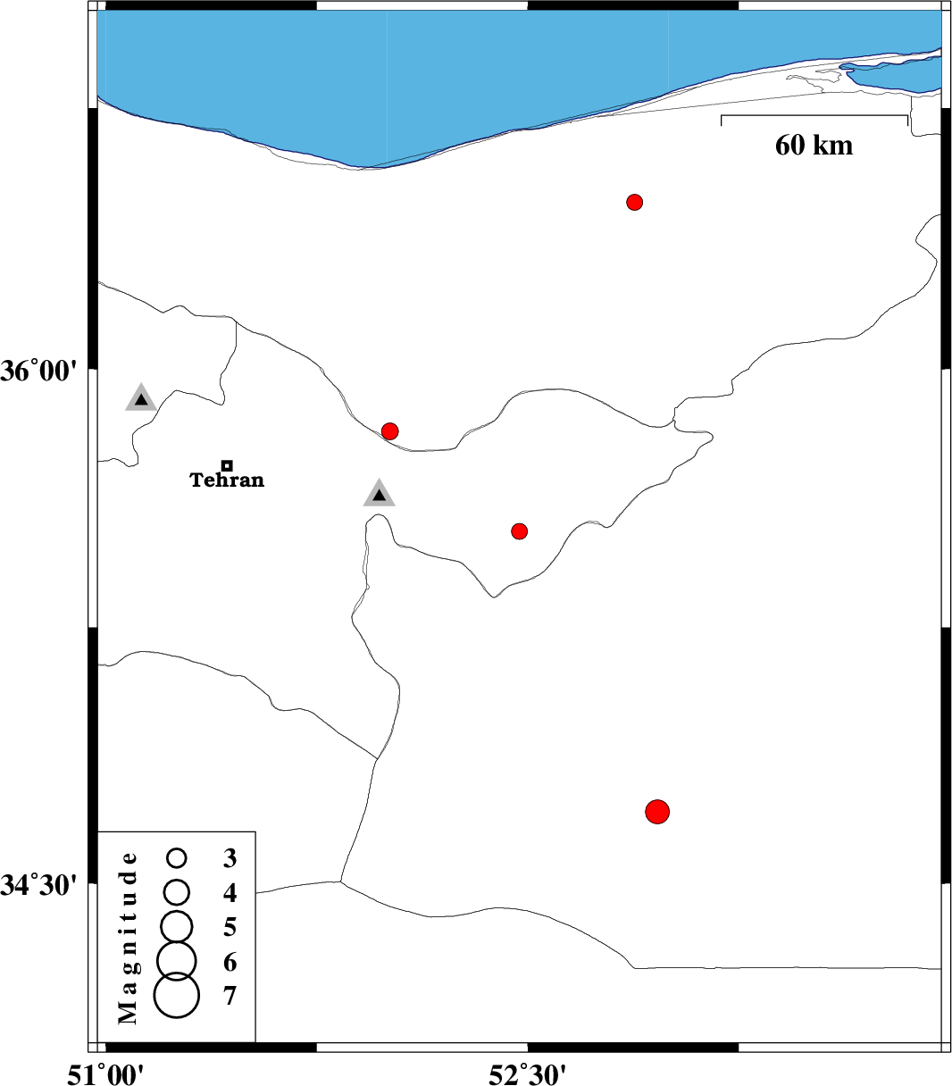 | 2007/10/06 | 10:15:16.1 | 13:45:16.1 | 35.82 | 52.01 | 15 | ML:2.7 | 12 km North of Damavand, Tehran Province |