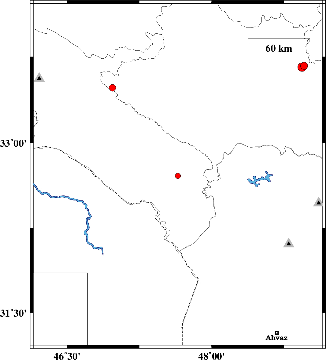 | 2007/11/11 | 11:06:46.1 | 14:36:46.1 | 32.71 | 47.65 | 14 | ML:2.6 | 29 km South-East of Abdanan, Ilam Province | ||