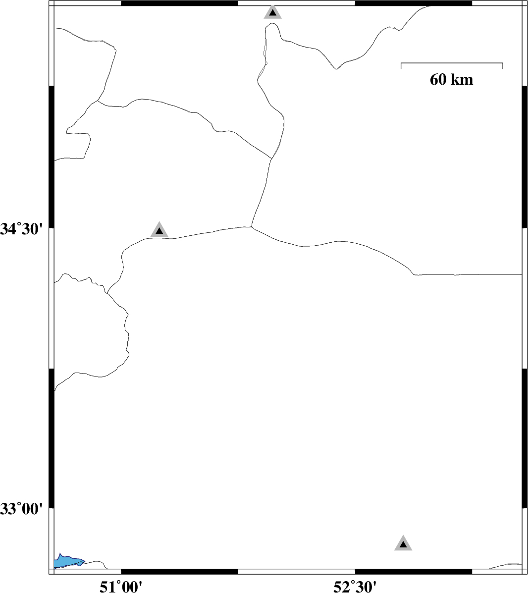 | 2007/11/13 | 21:45:14.9 | 01:15:14.9 | 34.17 | 52.07 | 39 | ML:3.2 | 56 km North-East of Aran va bidgol, Esfahan Province |