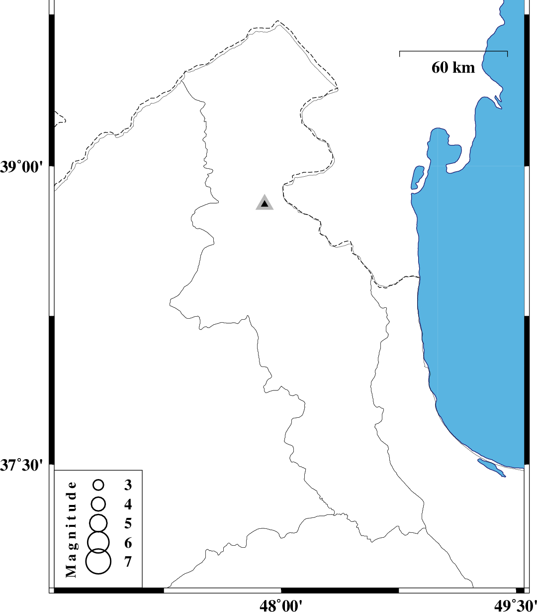 | 2007/11/18 | 21:42:49.5 | 01:12:49.5 | 38.37 | 48.05 | 36 | ML:3.3 | 25 km North-West of Ardabil, Ardebil Province |