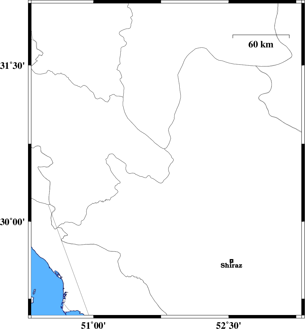 | 2007/11/15 | 02:37:41.1 | 06:07:41.1 | 29.36 | 52.47 | 46 | ML:3.4 | 29 km South of Shiraz, Fars Province | ||