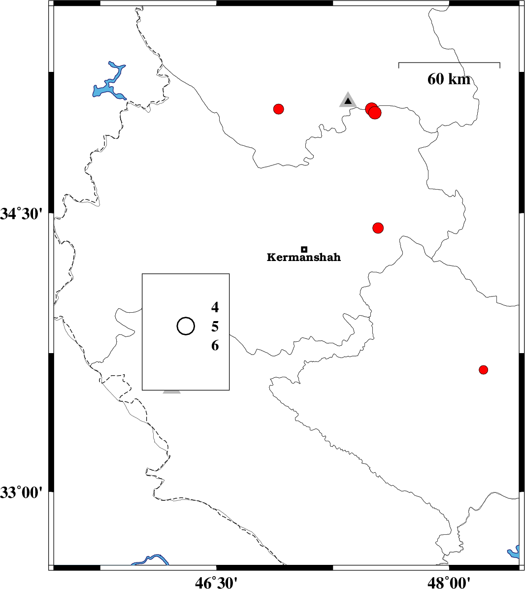 | 2007/11/30 | 23:39:59.9 | 03:09:59.9 | 34.1 | 46.95 | 15 | ML:3.7 | 25 km South-West of Kermanshah, Kermanshah Province | ||