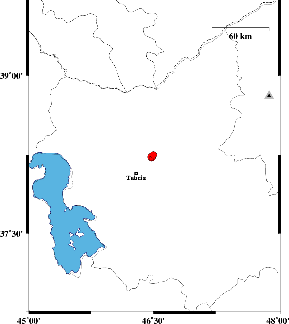 | 2007/12/02 | 02:53:06.2 | 06:23:06.2 | 38.22 | 46.48 | 18 | ML:2.7 | 22 km North-East of Tabriz, Azarbaijan Sharghi Province | ||