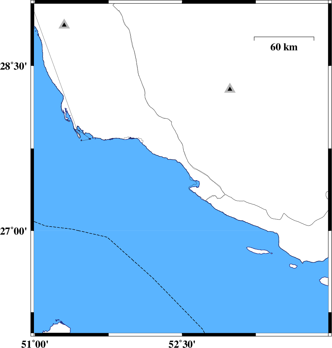 | 2007/12/29 | 02:58:43.4 | 06:28:43.4 | 27.56 | 52.49 | 31 | ML:2.8 | Persian Gulf, 35 km South-East of Jam |