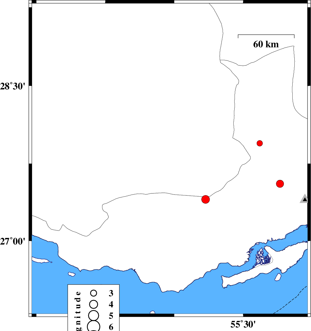 | 2008/01/05 | 00:37:47.2 | 04:07:47.2 | 27.79 | 54.7 | 14 | ML:4 | 37 km North-East of Lar, Fars Province | ||