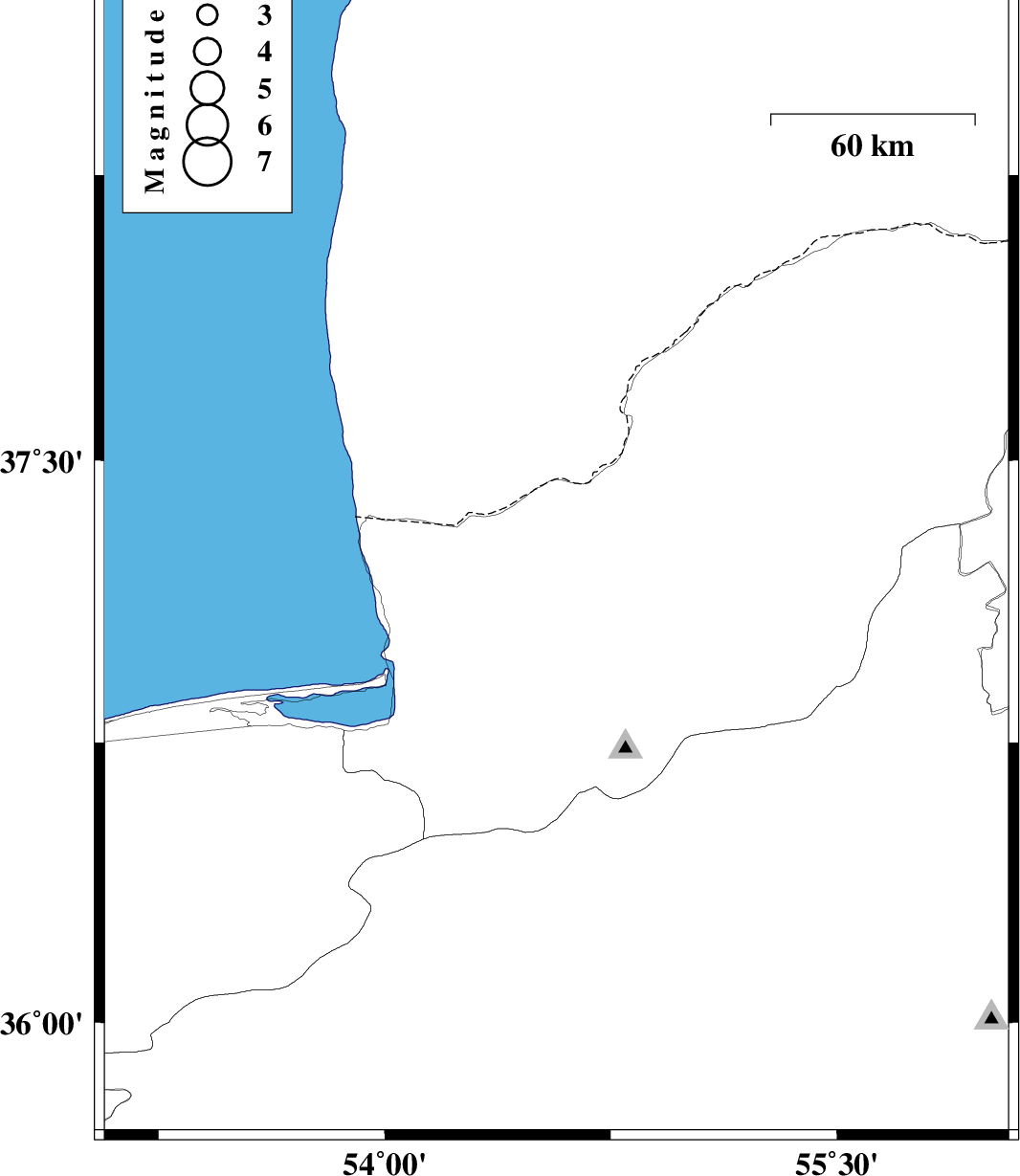 | 2008/01/02 | 11:25:31.0 | 14:55:31.0 | 37.05 | 54.97 | 14 | ML:2.8 | 15 km West of Ramian, Golestan Province |