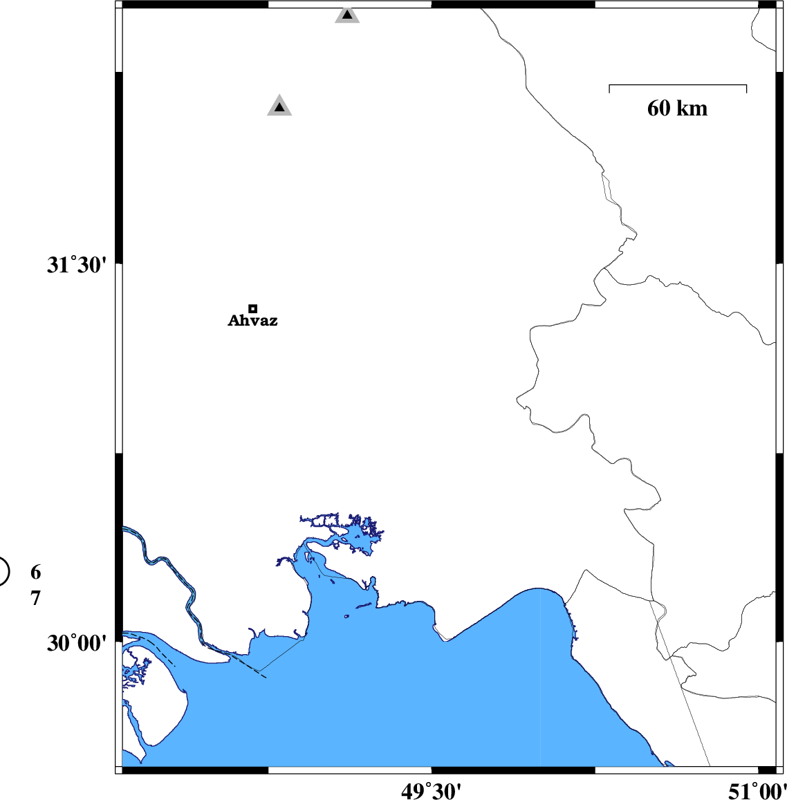 | 2008/01/05 | 07:09:48.8 | 10:39:48.8 | 31.49 | 49.41 | 26 | ML:3.7 | 30 km North-West of Ramhormoz, Khoozestan Province |