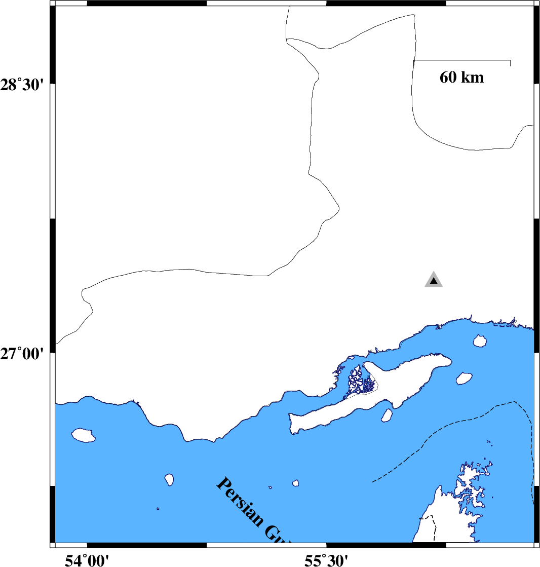 | 2008/01/18 | 11:17:51.8 | 14:47:51.8 | 27.13 | 54.76 | 30 | ML:4.5 | 39 km East of Bastak, Hormozgan Province |