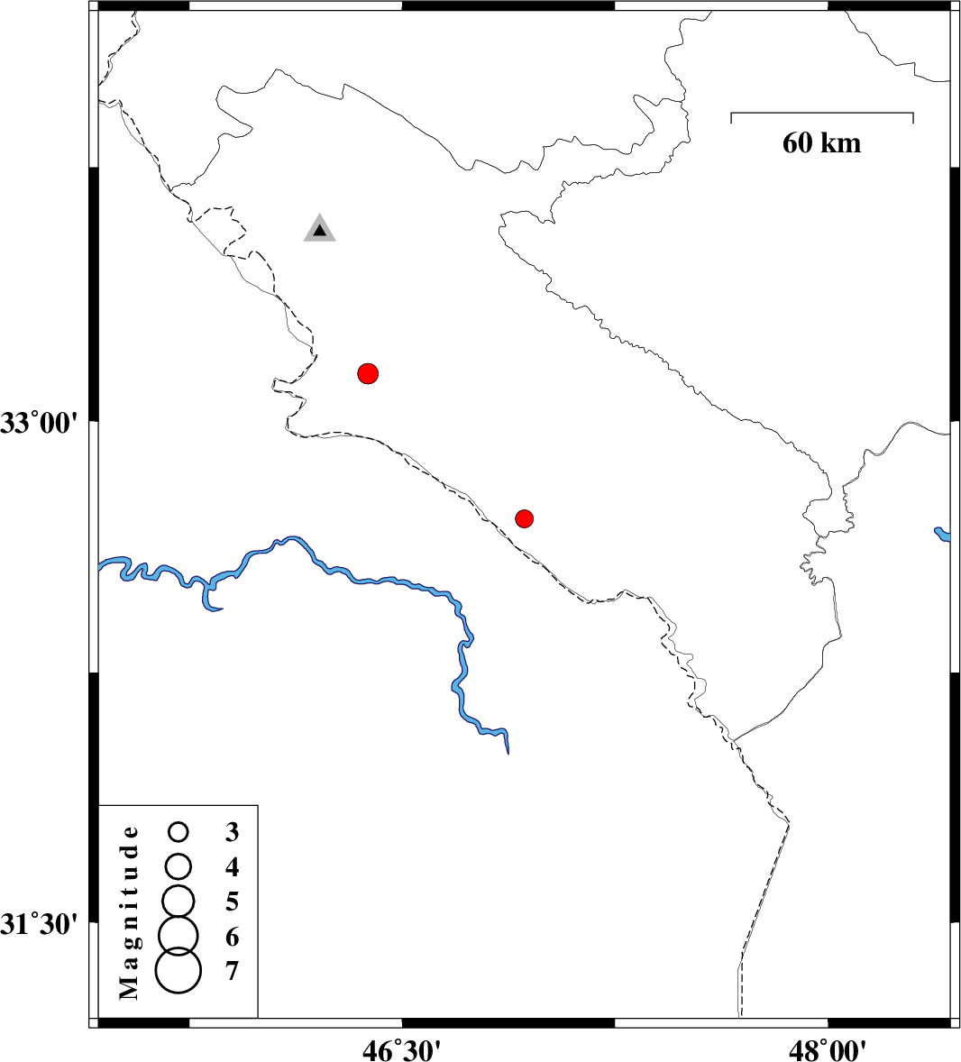| 2008/02/04 | 12:38:30.2 | 16:08:30.2 | 32.71 | 46.93 | 41 | ML:2.8 | 31 km West of Dehloran, Ilam Province | ||